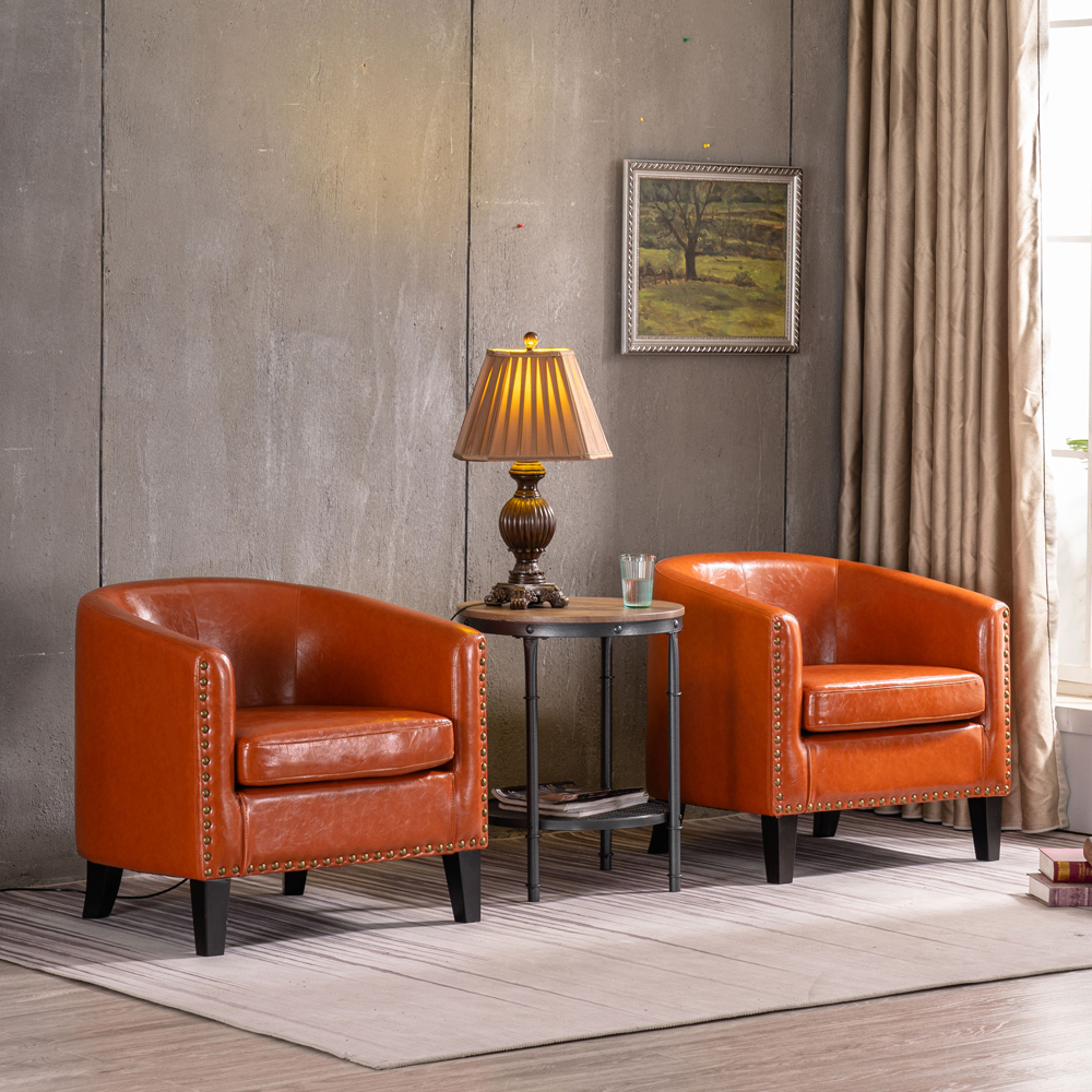 Upholstered accent chair, tuffed living room sofa armchairs, mid century linen fabric chair office chair with roll arm and wooden legs (brick) 4.7 out of 5 stars. Exposed feet with faux wood finish. Free shipping on orders $35+. Kick back and relax in comfy living room chairs. Usually ships within 6 to 10 days.